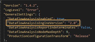 Opting in to the new Dataflow Analysis Engine can be made on a solution by solution basis, and is controlled by the new “DataflowAnalysisEngineVersion” field in solution’s .pumafile. By default, the value of this setting will be “1.0”. Modifying the value to “2.0” will instruct Puma Scan Professional to use the new engine.